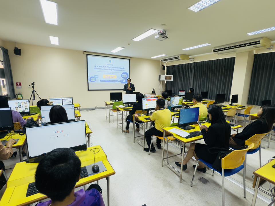ปัญญาประดิษฐ์ในสวนดุสิต เพื่อยกระดับทักษะการปฏิบัติงาน ของบุคลากร เพื่อยกระดับความรู้ และพัฒนาทักษะดิจิทัลสมัยใหม่ ในกิจกรรมที่ 2 ; อบรมเชิงปฏิบัติการสำหรับบุคากรสายสนับสนุน ของมหาวิทยาลัยสวนดุสิต ศูนย์การศึกษา นครนายก และโรงเรียนสาธิตละอออุทิศ ศูนย์การศึกษา นครนายก ในวันที่ 3 พฤษภาคม 2568 เวลา 09.00 – 16.30 น. ณ อาคาร 5 ชั้น 2 หัองปฏิบัติการคอมพิวเตอร์