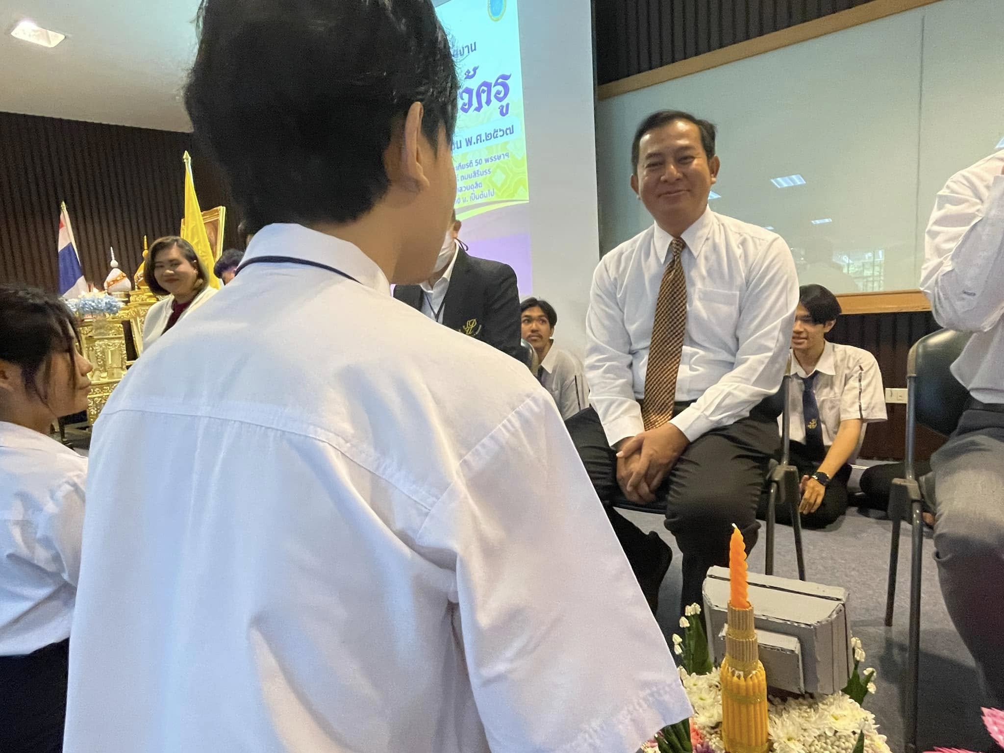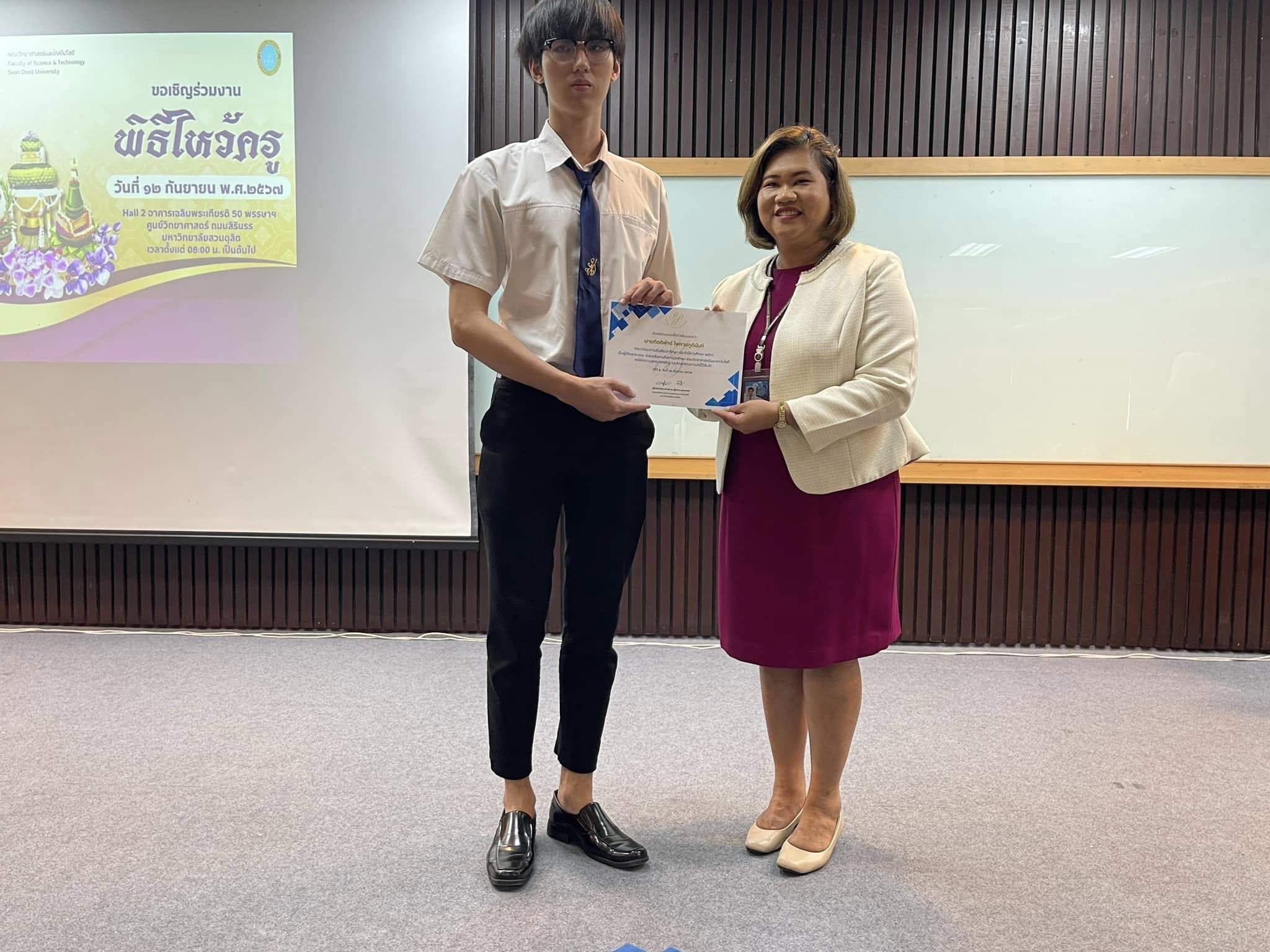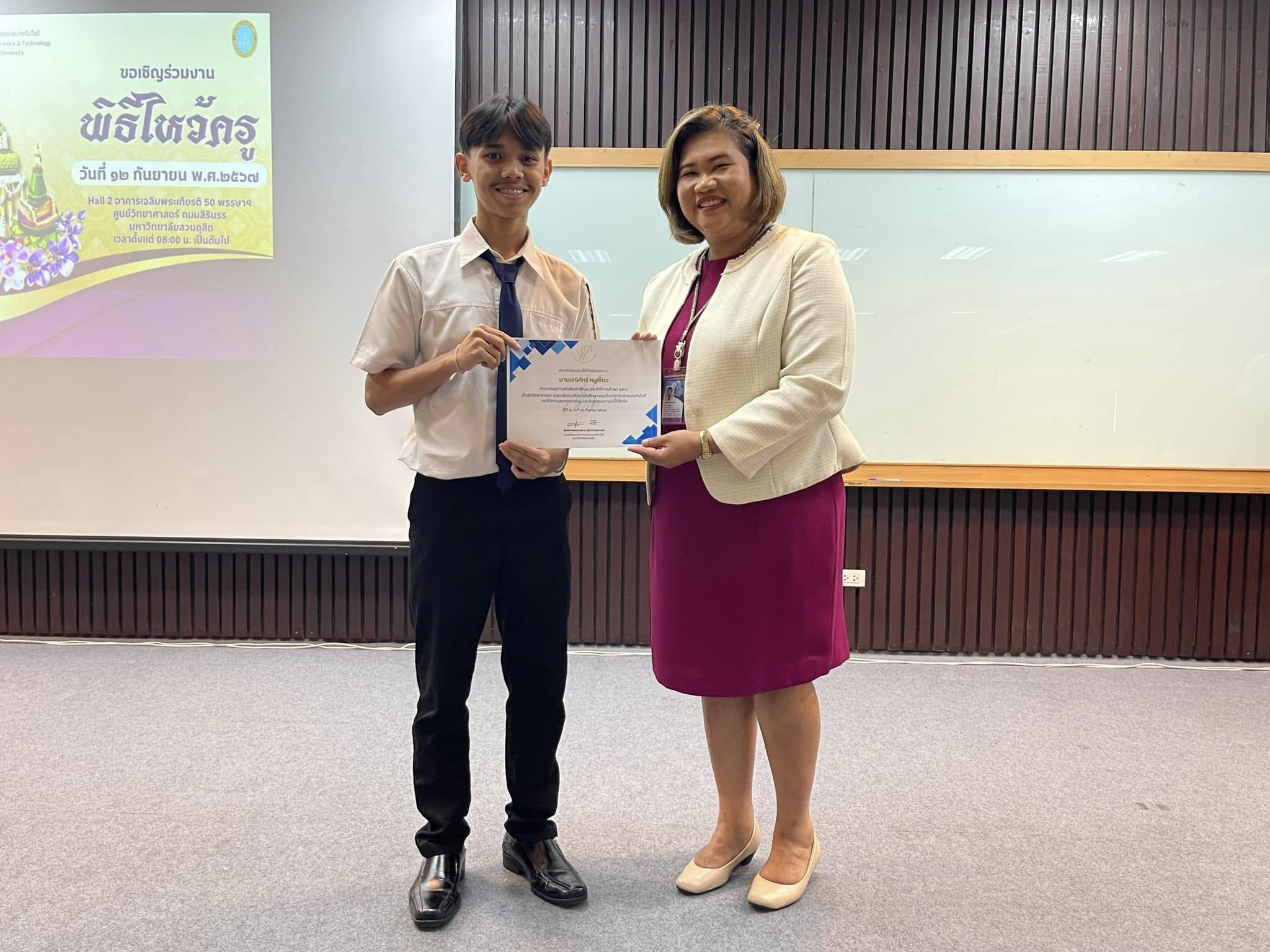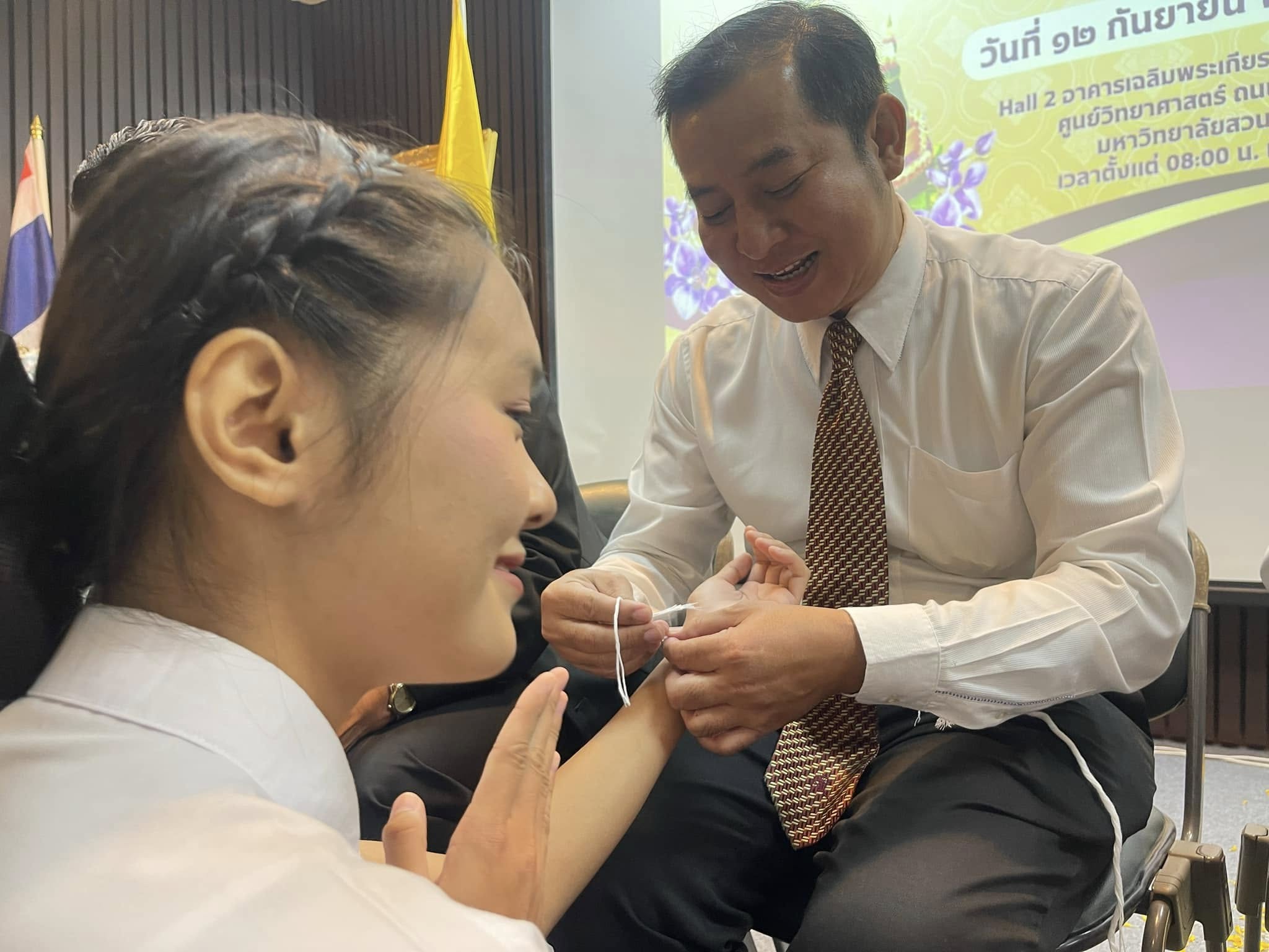 ผศ.ดร.ฐิตินาถ สุคนเขตร์ คณบดีคณะวิทยาศาสตร์และเทคโนโลยี เป็นประธานจุดธูปเทียนบูชาพระรัตนตรัย จากนั้นตัวแทนนักศึกษากล่าวนำสวดมนต์ไหว้พระ/กล่าวบทนำไหว้ครู ตัวแทนนักศึกษานำพานธูปเทียน และพานดอกไม้ไหว้ครู ตัวแทนนักศึกษานำกล่าวบทกลอนเทิดทูนพระคุณครู จากนั้นนักศึกษาร่วมร้องเพลงพระคุณที่สาม ตัวแทนนักศึกษานำกล่าวคำปฏิญาณตน คณบดีคณะวิทยาศาสตร์และเทคโนโลยี เจิมหนังสือ พร้อมกล่าวให้โอวาท ภายในงานยังได้รับเกียรติจากศิษย์เก่าดีเด่นที่มาบอกเล่าความรู้สึกที่มีต่อคณะวิทยาศาสตร์และเทคโนโลยี และมหาวิทยาลัยสวนดุสิต ปิดท้ายเป็นพิธีมอบเกียรติบัตรและประกาศยกย่องศิษย์เก่าดีเด่นของคณะวิทยาศาสตร์และเทคโนโลยี พิธีมอบเกียรติบัตรคณะกรรมการนักศึกษา ประจำปีการศึกษา 2567 พิธีประดับเข็มอะตอมนักศึกษาชั้นปีที่ 1 (สัญลักษณ์ประจำนักศึกษาคณะวิทยาศาสตร์และเทคโนโลยี)