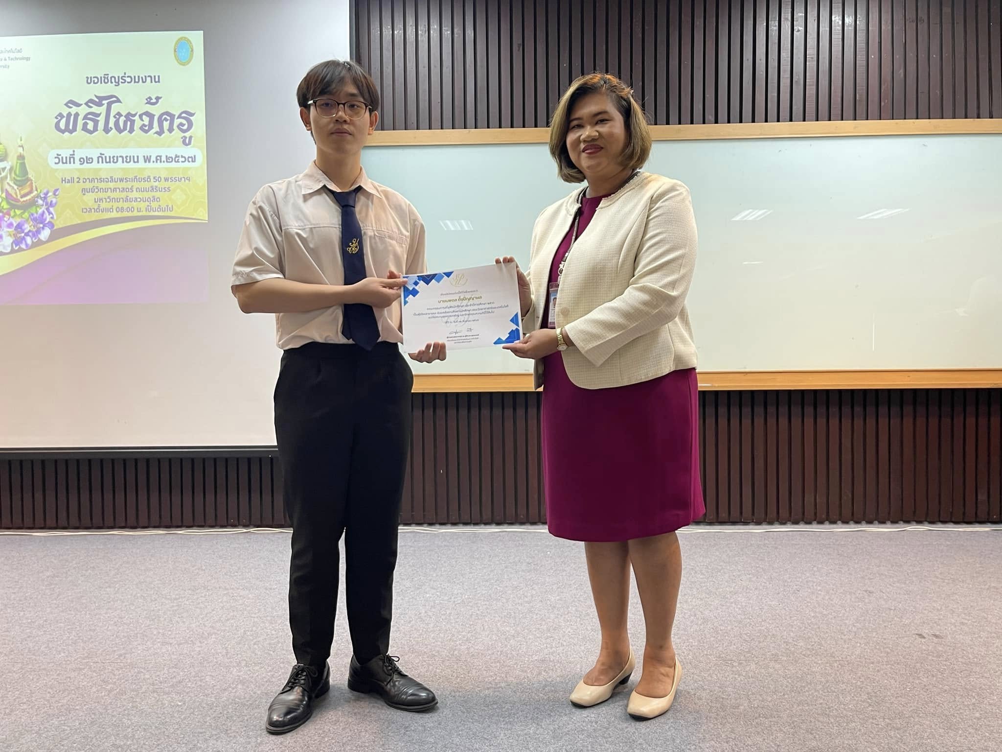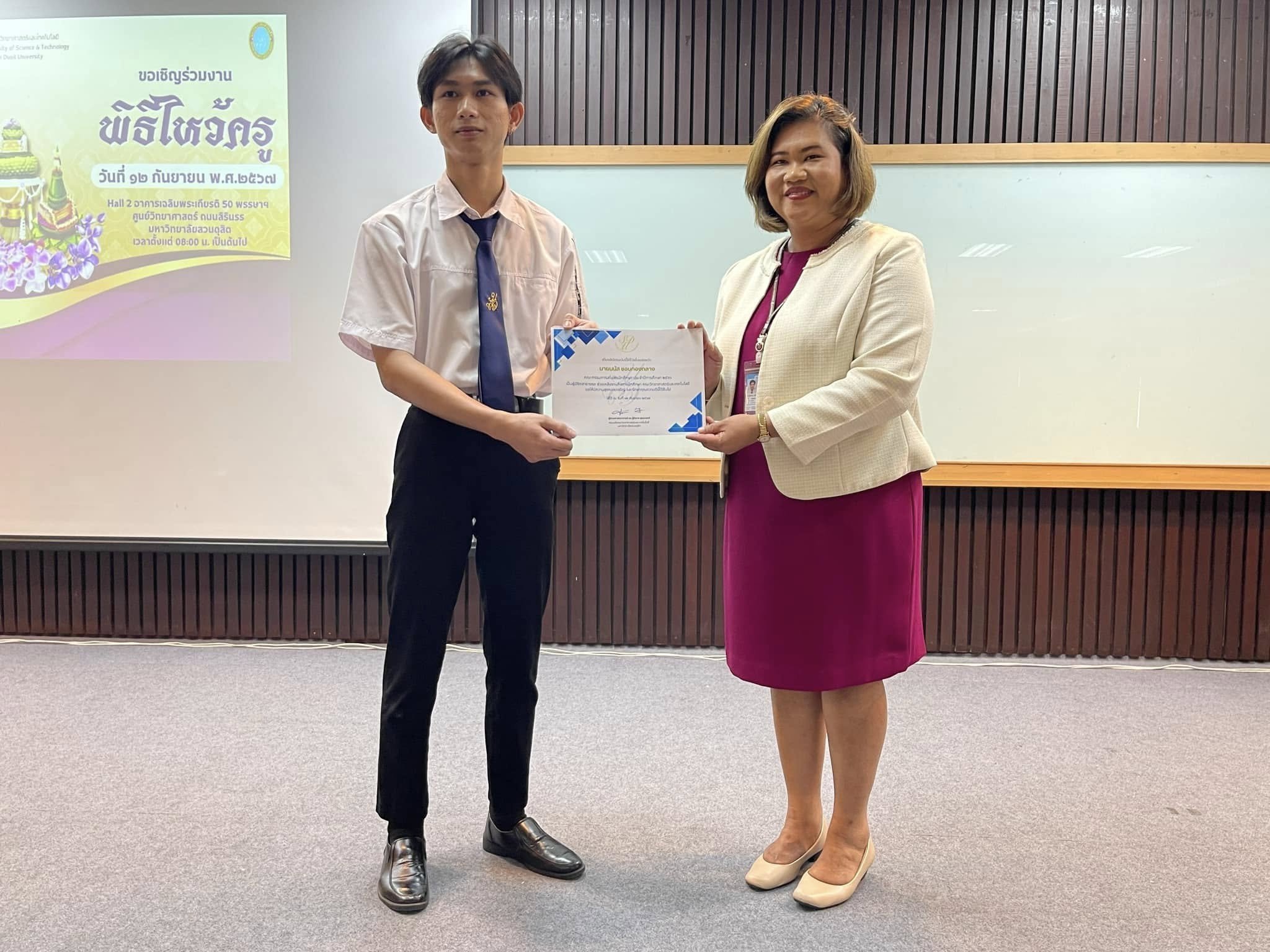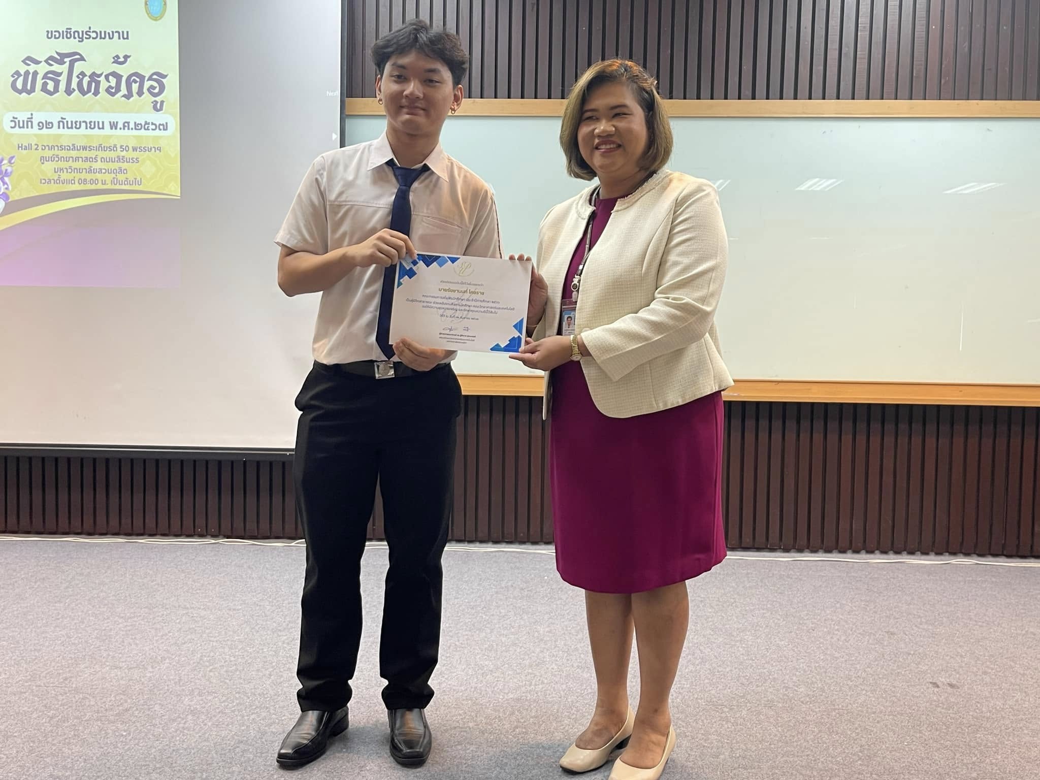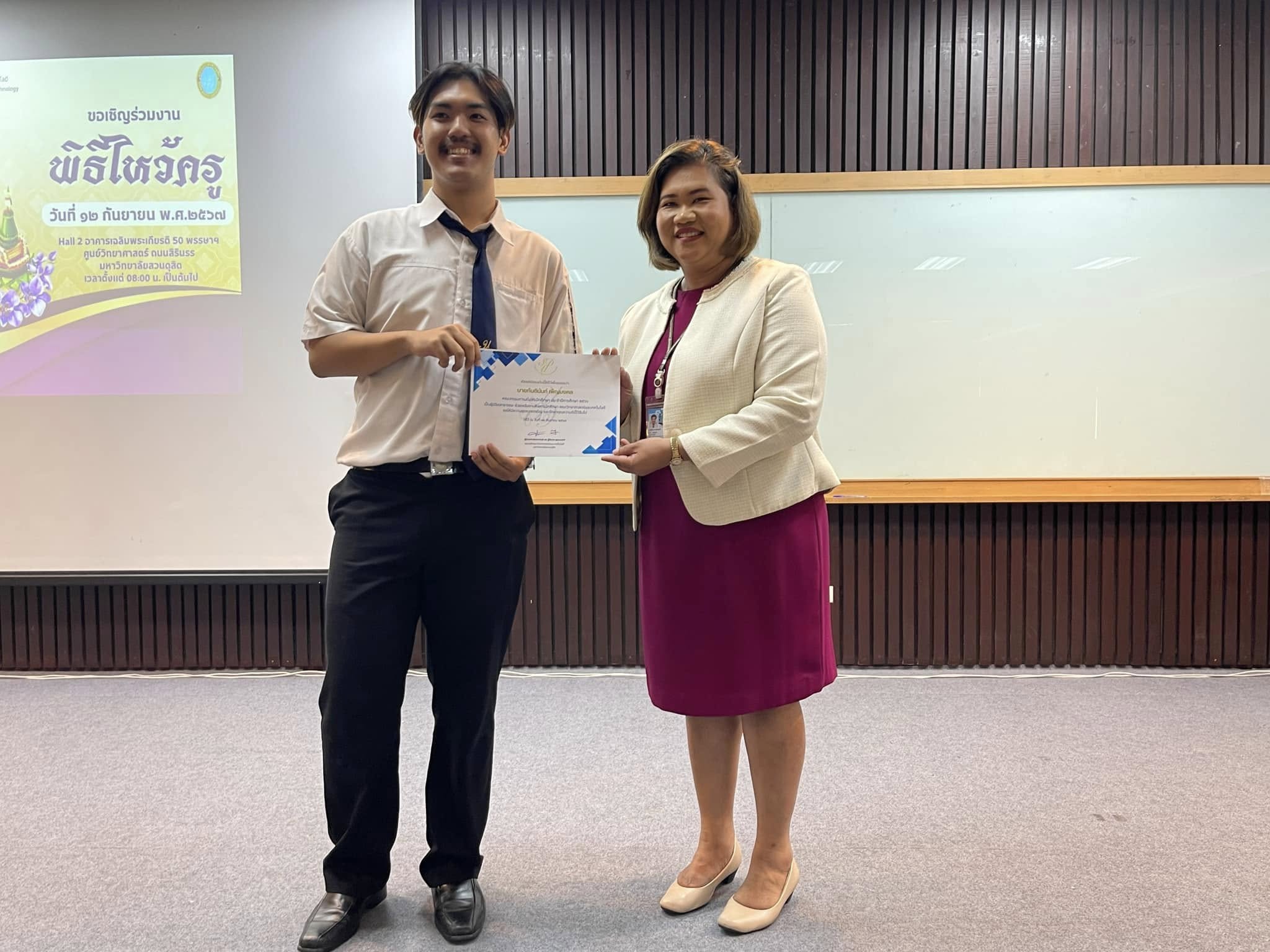 ผศ.ดร.ฐิตินาถ สุคนเขตร์ คณบดีคณะวิทยาศาสตร์และเทคโนโลยี เป็นประธานจุดธูปเทียนบูชาพระรัตนตรัย จากนั้นตัวแทนนักศึกษากล่าวนำสวดมนต์ไหว้พระ/กล่าวบทนำไหว้ครู ตัวแทนนักศึกษานำพานธูปเทียน และพานดอกไม้ไหว้ครู ตัวแทนนักศึกษานำกล่าวบทกลอนเทิดทูนพระคุณครู จากนั้นนักศึกษาร่วมร้องเพลงพระคุณที่สาม ตัวแทนนักศึกษานำกล่าวคำปฏิญาณตน คณบดีคณะวิทยาศาสตร์และเทคโนโลยี เจิมหนังสือ พร้อมกล่าวให้โอวาท ภายในงานยังได้รับเกียรติจากศิษย์เก่าดีเด่นที่มาบอกเล่าความรู้สึกที่มีต่อคณะวิทยาศาสตร์และเทคโนโลยี และมหาวิทยาลัยสวนดุสิต ปิดท้ายเป็นพิธีมอบเกียรติบัตรและประกาศยกย่องศิษย์เก่าดีเด่นของคณะวิทยาศาสตร์และเทคโนโลยี พิธีมอบเกียรติบัตรคณะกรรมการนักศึกษา ประจำปีการศึกษา 2567 พิธีประดับเข็มอะตอมนักศึกษาชั้นปีที่ 1 (สัญลักษณ์ประจำนักศึกษาคณะวิทยาศาสตร์และเทคโนโลยี)